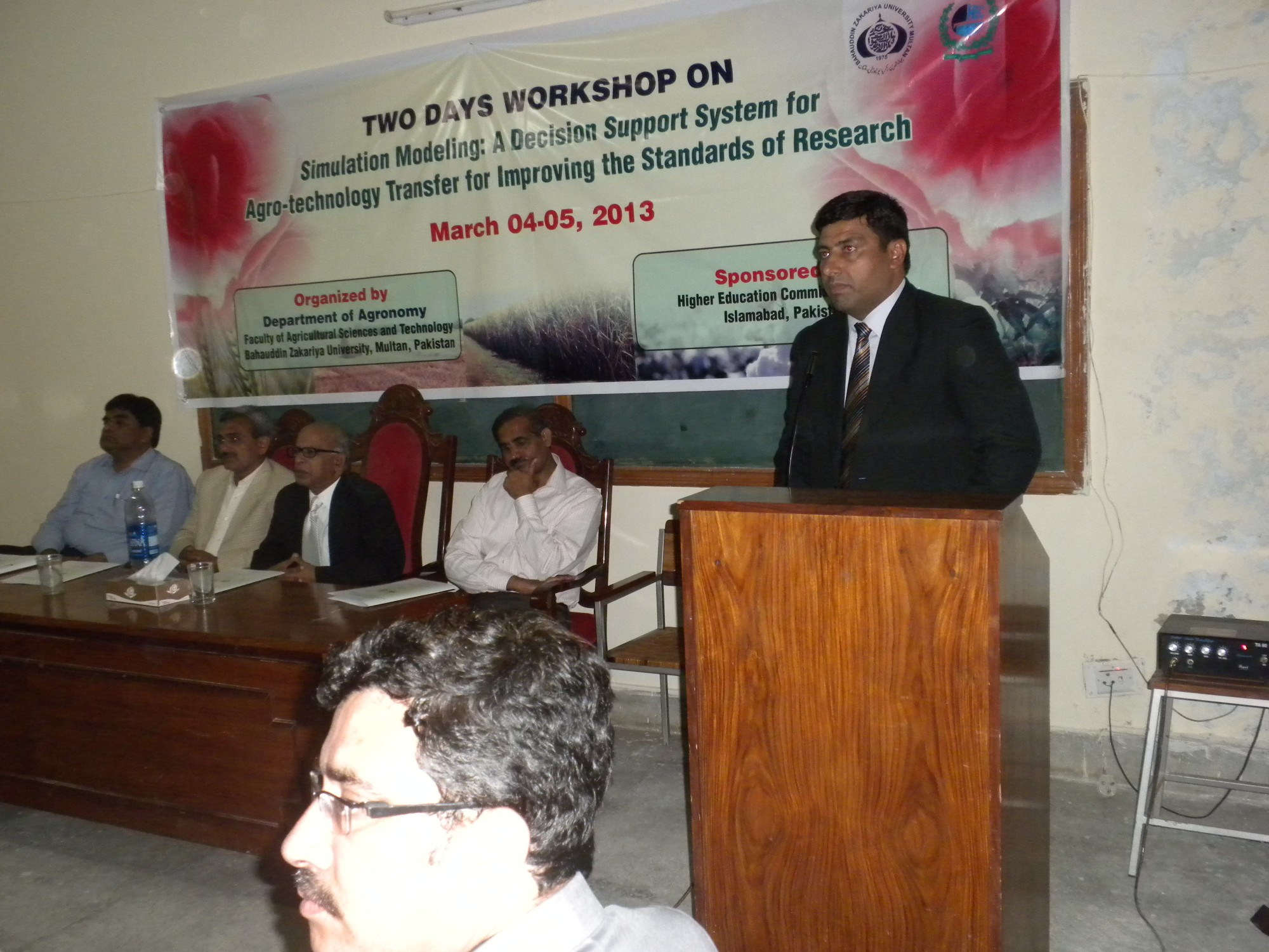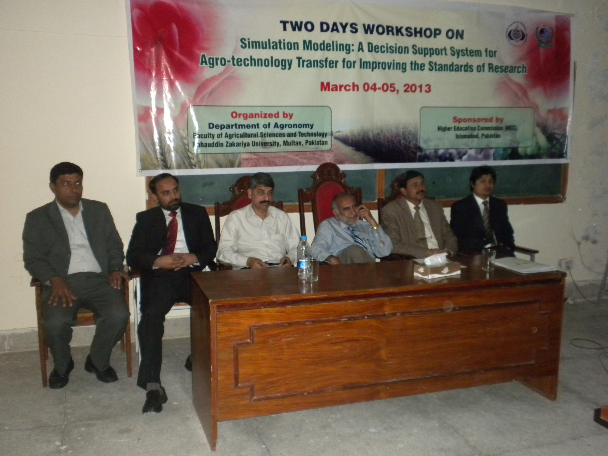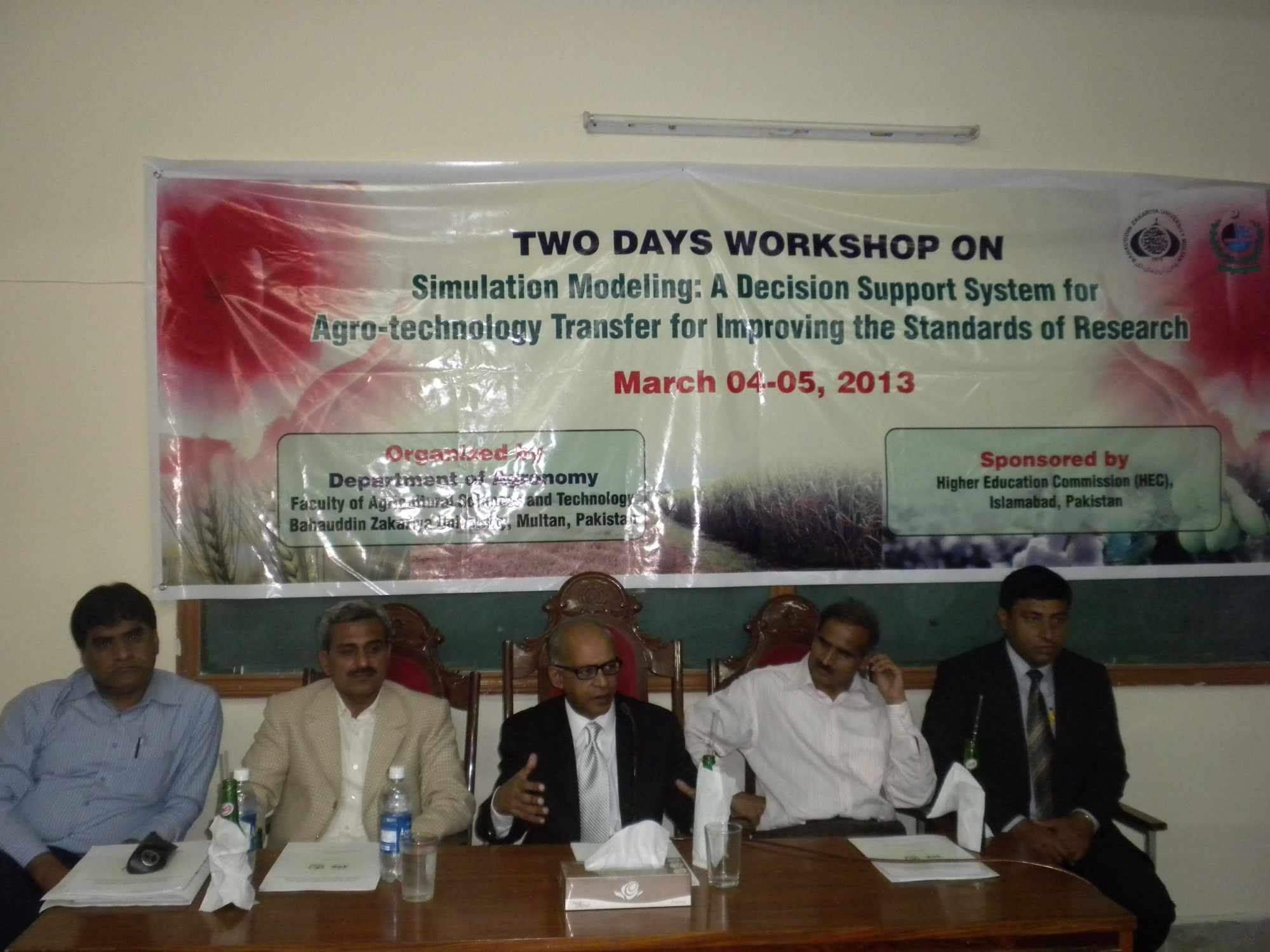 A two-day workshop on the “Simulation Modeling: A Decision Support System for Agro-technology Transfer for Improving the Standards of Research” was held at the Bahauddin Zakariya University in Multan, Pakistan, on 3-4 March 2013 – organized by Department of Agronomy Faculty of Agricultural Sciences and Technology, sponsored by the Higher Education Commission (HEC) in Islamabad, Pakistan.
